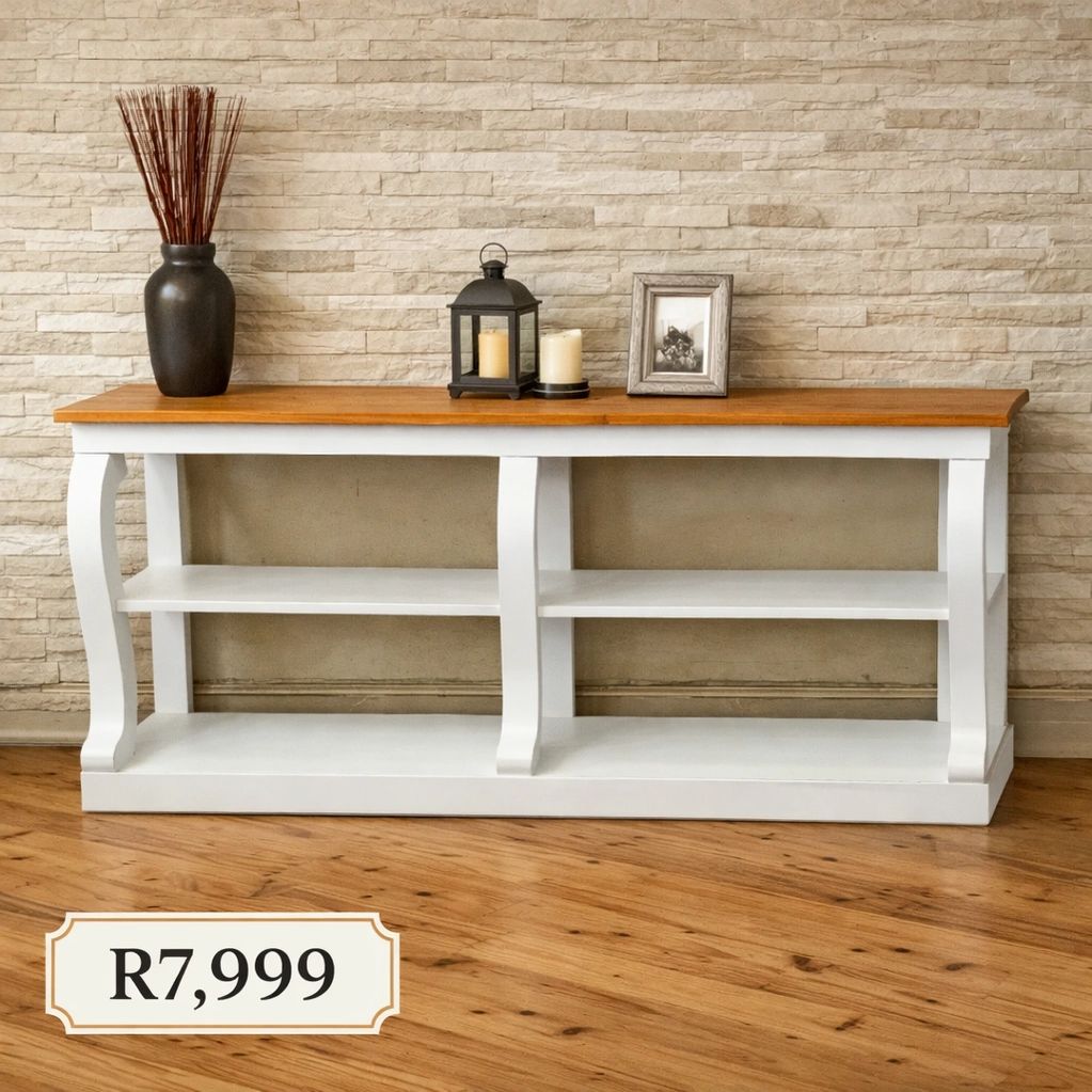Add character and charm to your dining or living space with this beautifully crafted vintage server. Featuring a warm pine top paired with a crisp white base, it offers the perfect balance of rustic charm and classic elegance.